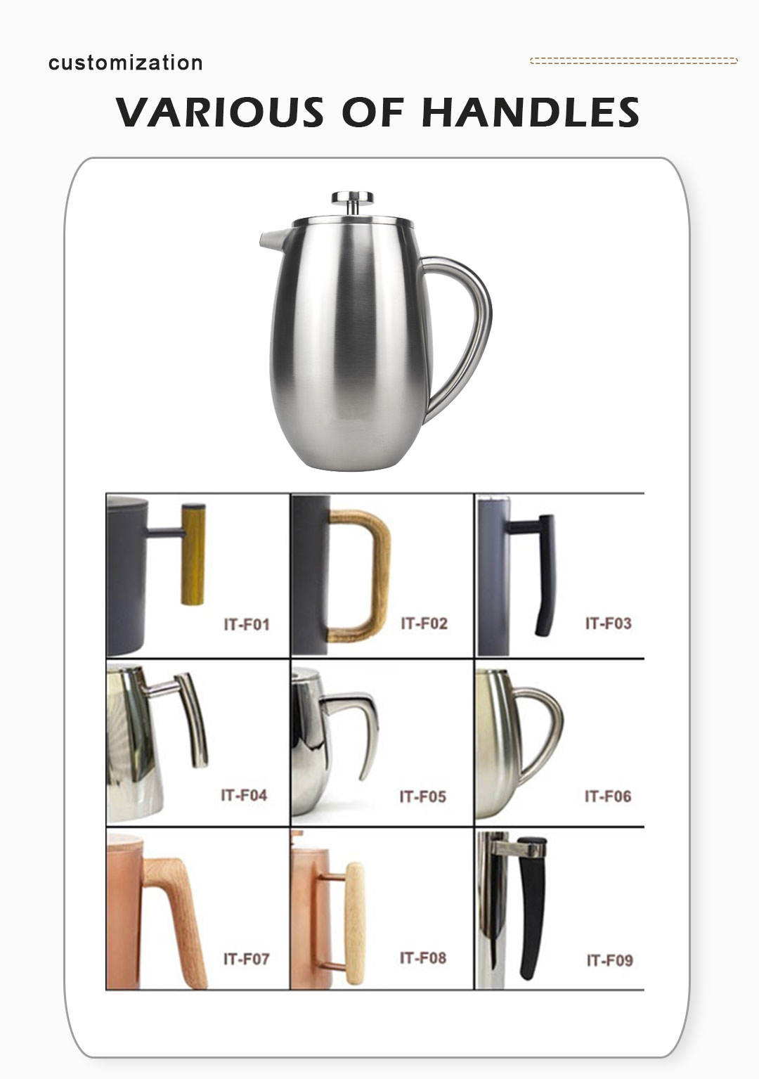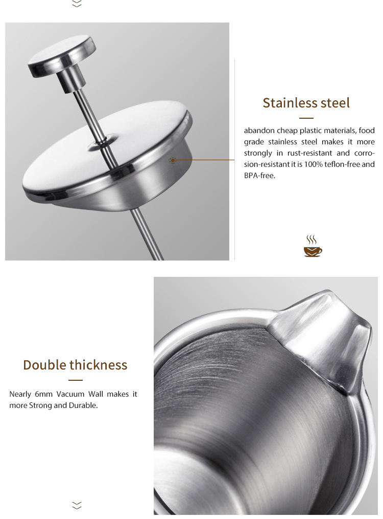 ✔ 고품질 이중벽 스테인리스 스틸: 고품질 프렌치 프레스 차 및 커피 브루어 대용량 커피 포트는 고품질 18/10 스테인리스 스틸로 제작되었습니다.이중 벽으로 된 단열 포트는 커피 또는 차를 최대 2시간 동안 뜨겁게 유지합니다.식기세척기 사용 가능.